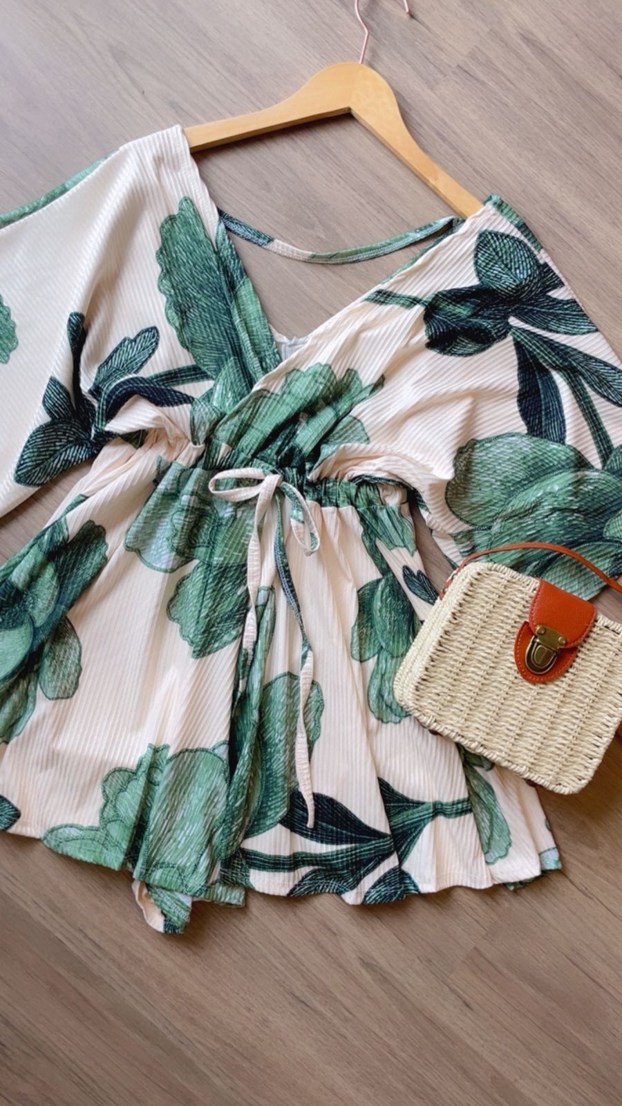 Macaquinho curto estampado no tecido crepinho, manga morcego disponível nos tamanho único ajustável serve 38 ao 44